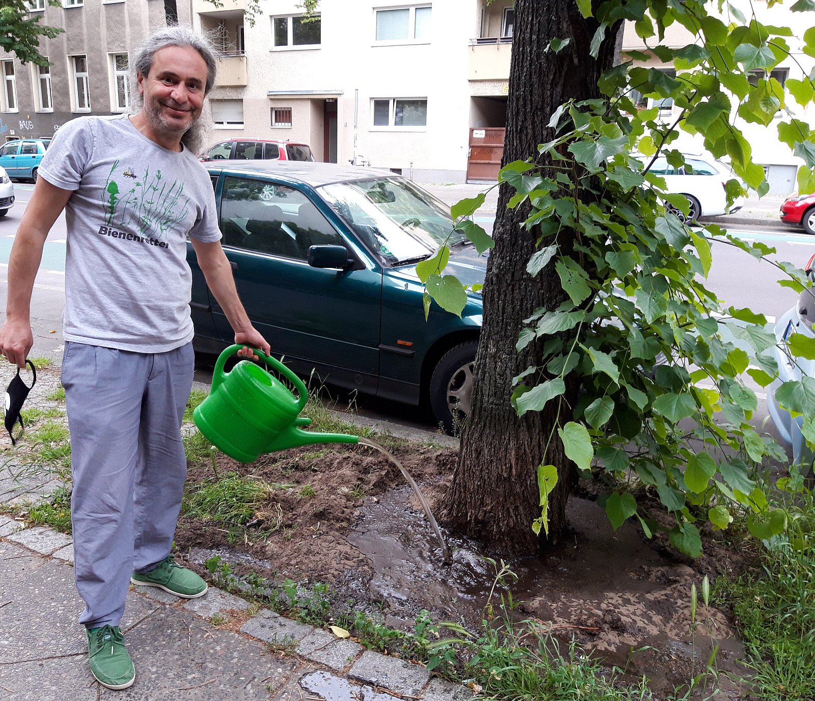 Fotos von den Baumgießaktionen in Friedrichshain-Kreuzberg am 29. Mai und 06. Juni 2020.