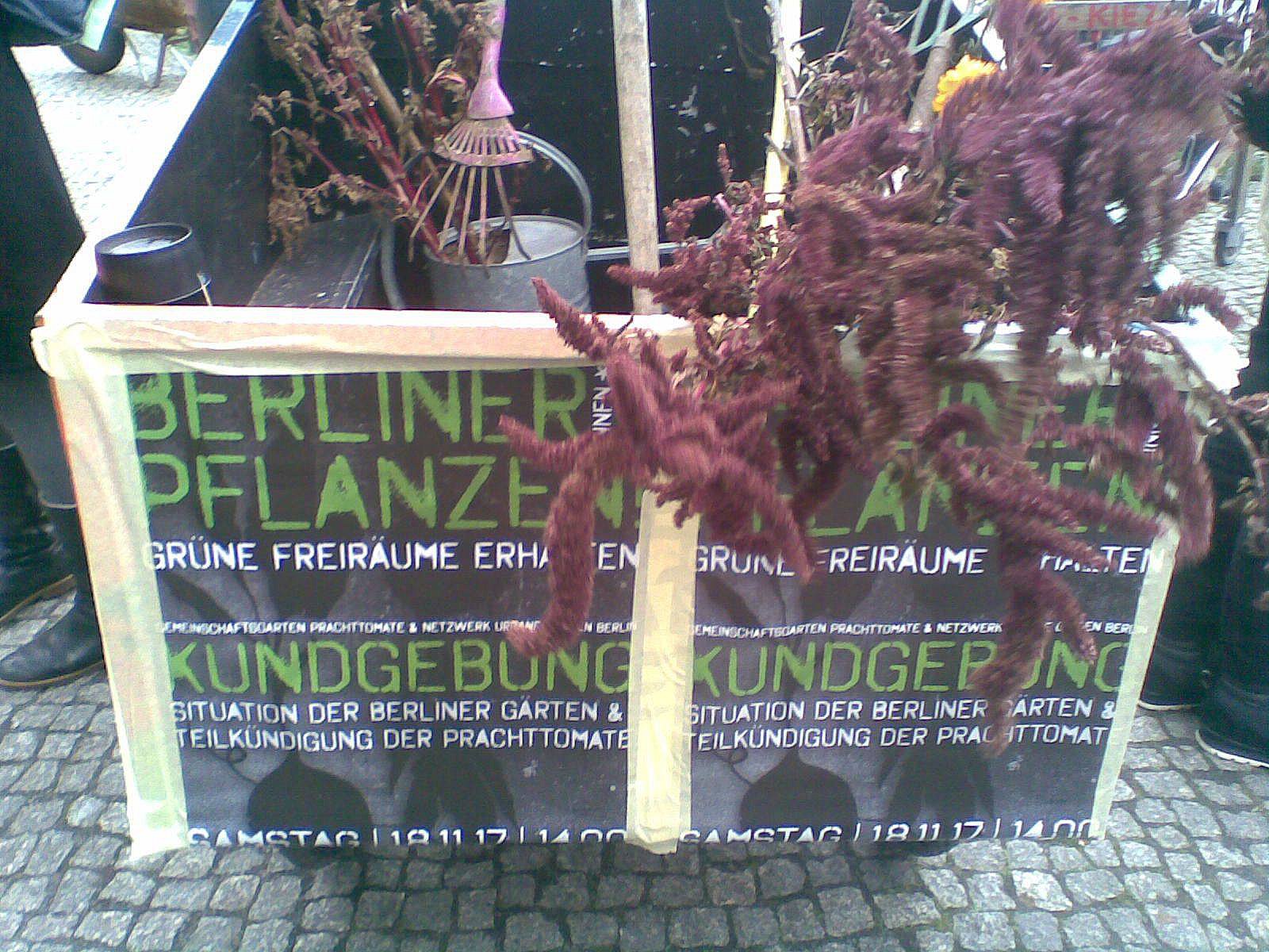 Kundgebung zum Erhalt des Gartenprojektes "Prachttomate" in Neukölln